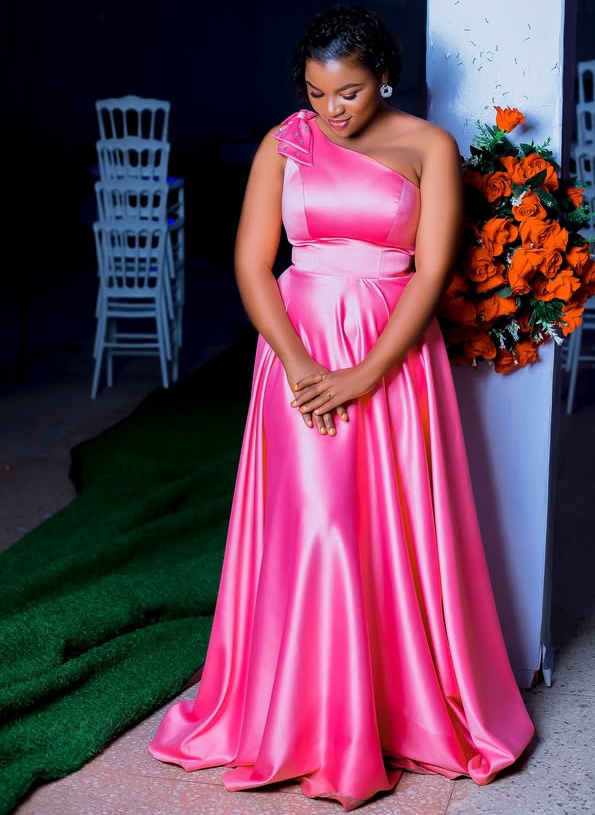 The fourth style is a timeless one-shoulder gown with a fitted bodice and flowing skirt. The sleek design and smooth texture give it a luxurious finish, while the asymmetrical neckline adds a modern twist. This gown is ideal for weddings, galas, or evening parties where you want to exude understated glamour.