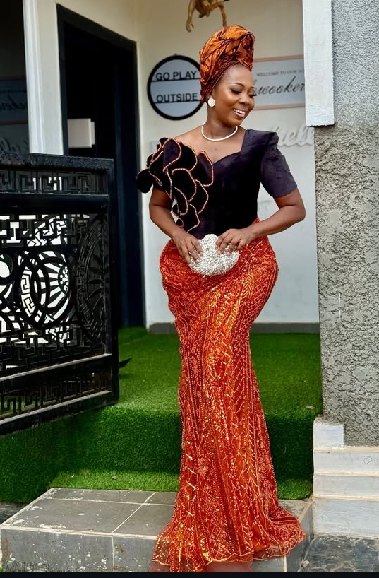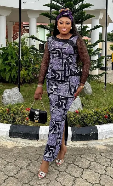 Velvet and sequin lovers, rejoice! The final style features a simple yet bold velvet blouse with sculpted detailing on the neckline, paired with a shimmering wrapper. This look is not only church-appropriate but also glamorous enough for festive gatherings or birthday celebrations.