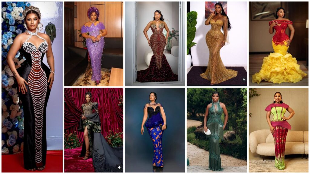 When it comes to turning heads at owambe parties, the styles in your collection are nothing short of breathtaking. From sculpted corset silhouettes to dramatic layered gowns, these looks perfectly capture what modern Aso-Ebi fashion is all about—bold elegance, detailed craftsmanship, and unapologetic glamour.