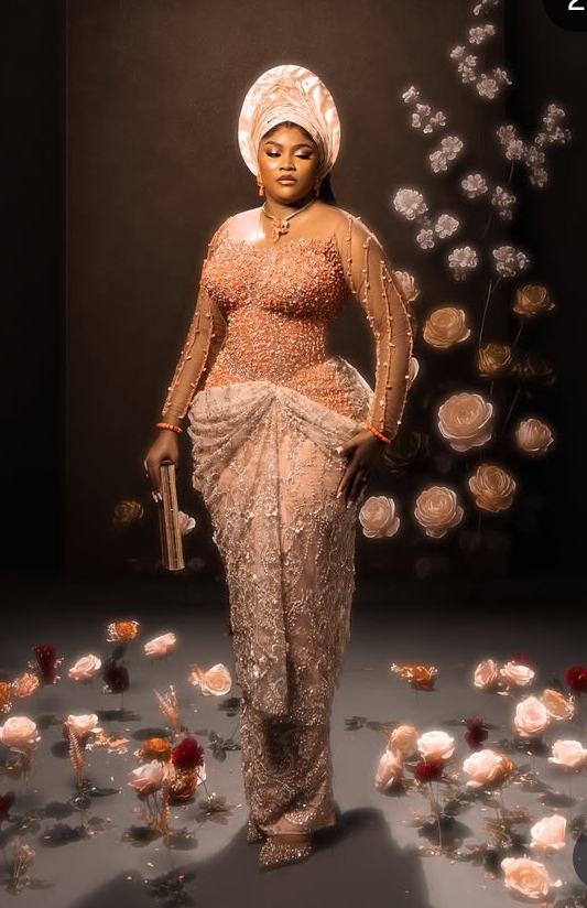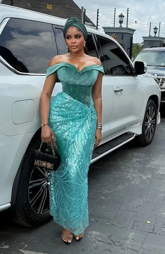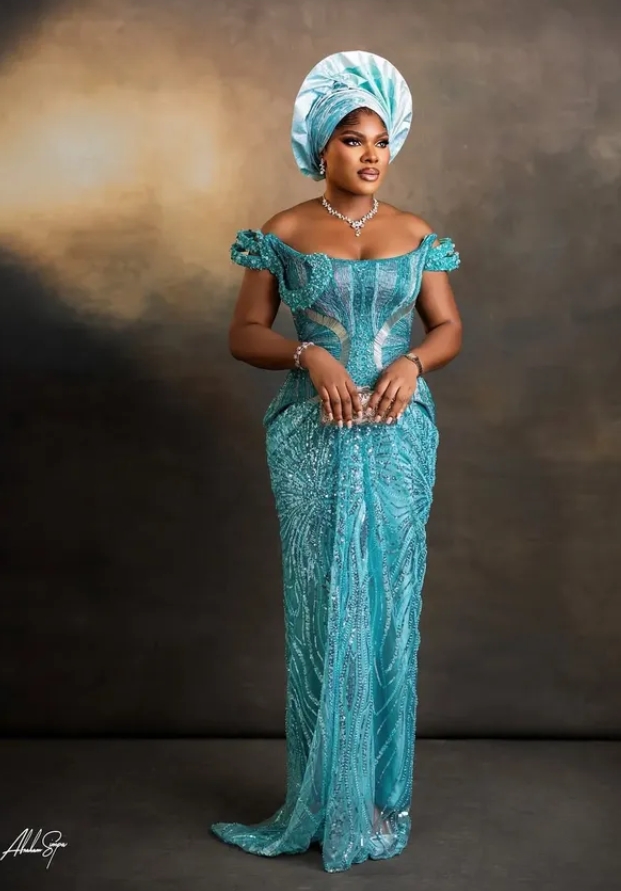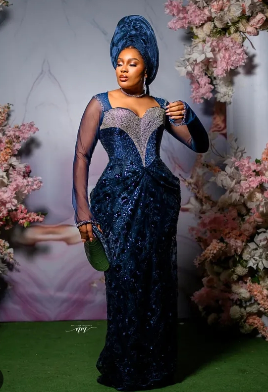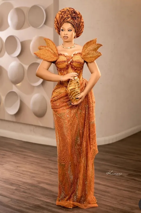 Lace continues to dominate Owambe glam, but designers are elevating it with intricate hand-beading, crystals, sequences, and embroidered detailing. These touches make every outfit look like a high-end couture piece.