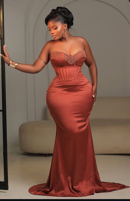 For those who love drama and elegance, the mermaid gown is a must-have. The burnt orange corset mermaid dress in the image is a showstopper, perfect for making an entrance.