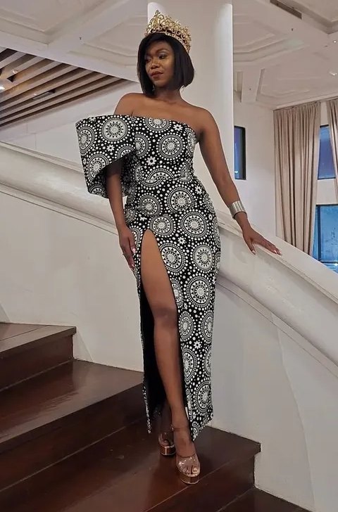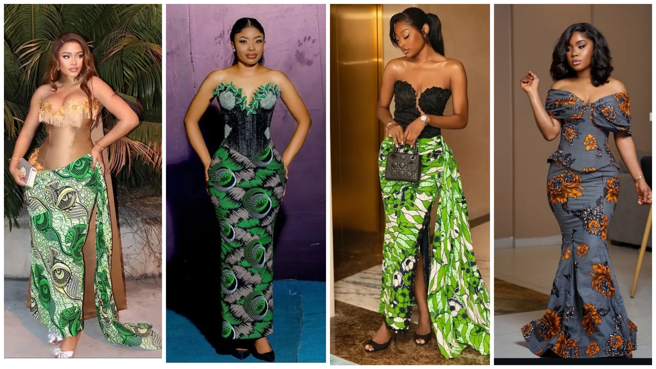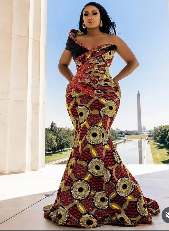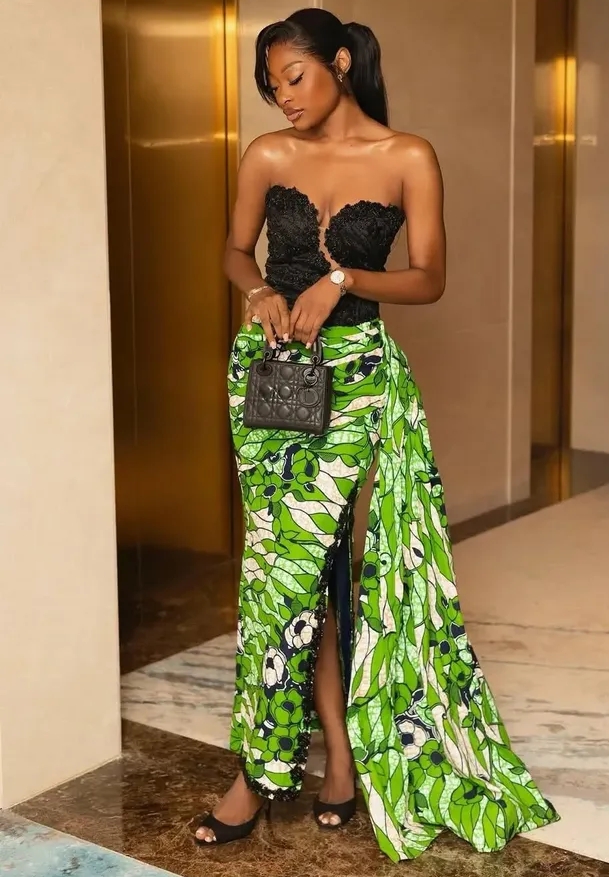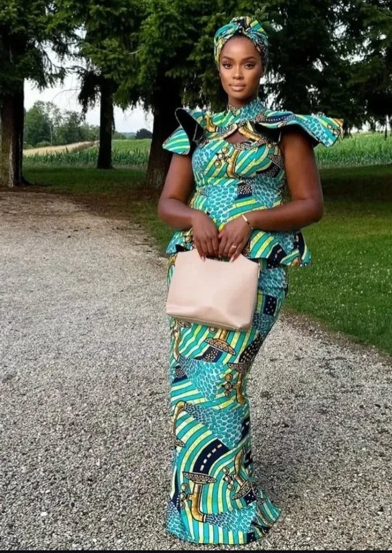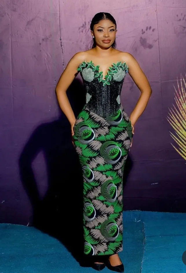 Corset Ankara gowns have become a major hit, offering the perfect mix of African vibrance and Western elegance. These designs hug the body beautifully, enhancing your natural shape while exuding sophistication. Whether paired with a bold slit or a dramatic train, corset Ankara styles are perfect for glamorous outings.