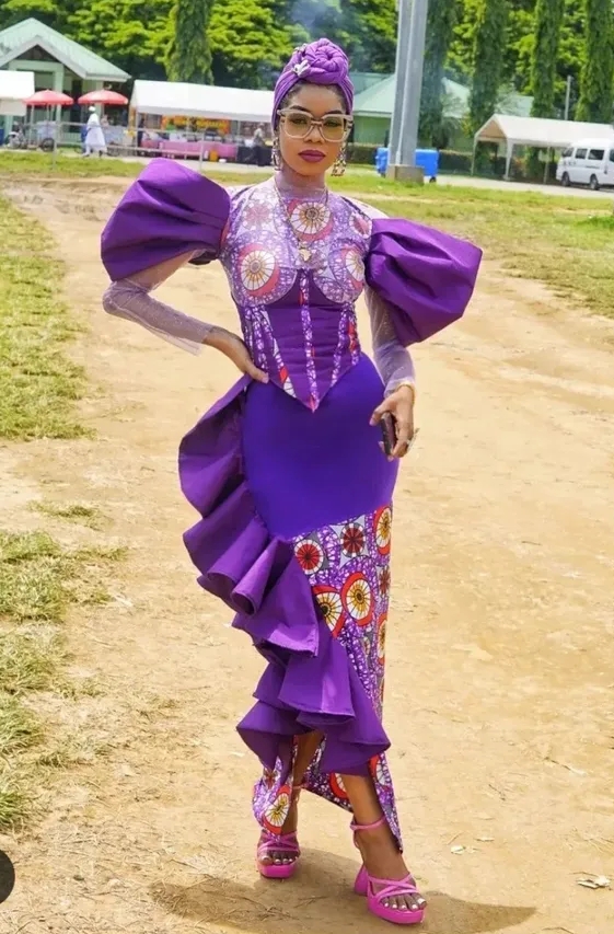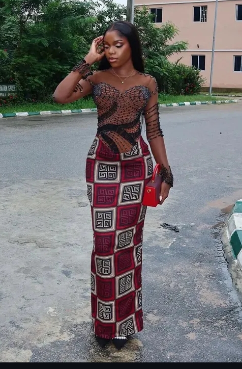 Fashionistas are now embracing the beauty of combining Ankara with lace, satin, or mesh fabrics. This mix not only adds texture and depth but also gives a fresh, high-fashion appeal to the outfit. From delicate lace overlays to satin bodice pairings, this fusion style is a winner.