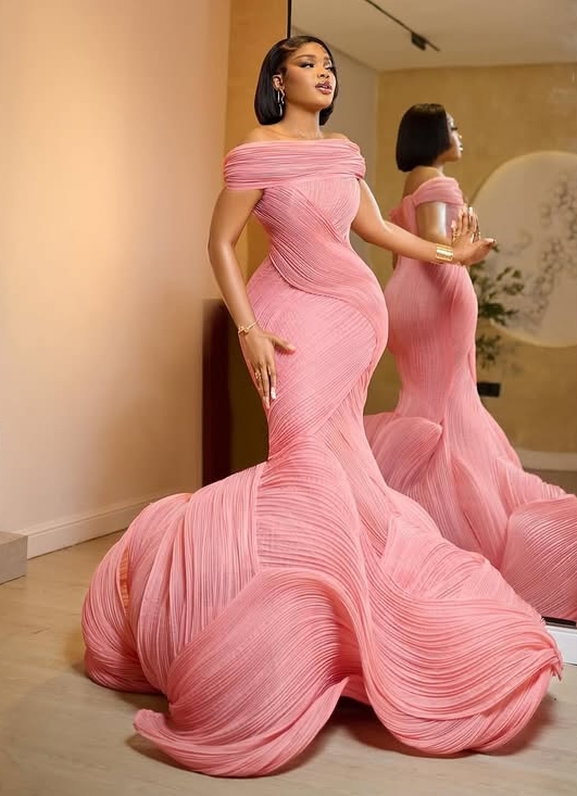 This season, fish line organza styles are trending. I know you must have seen it with celebrity and celebrity designers on Instagram and major social gatherings such as weddings reception and the likes.