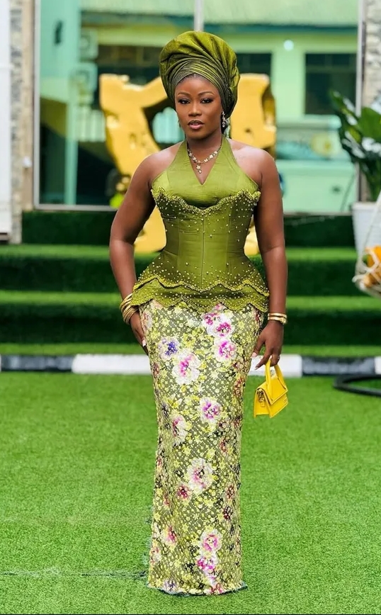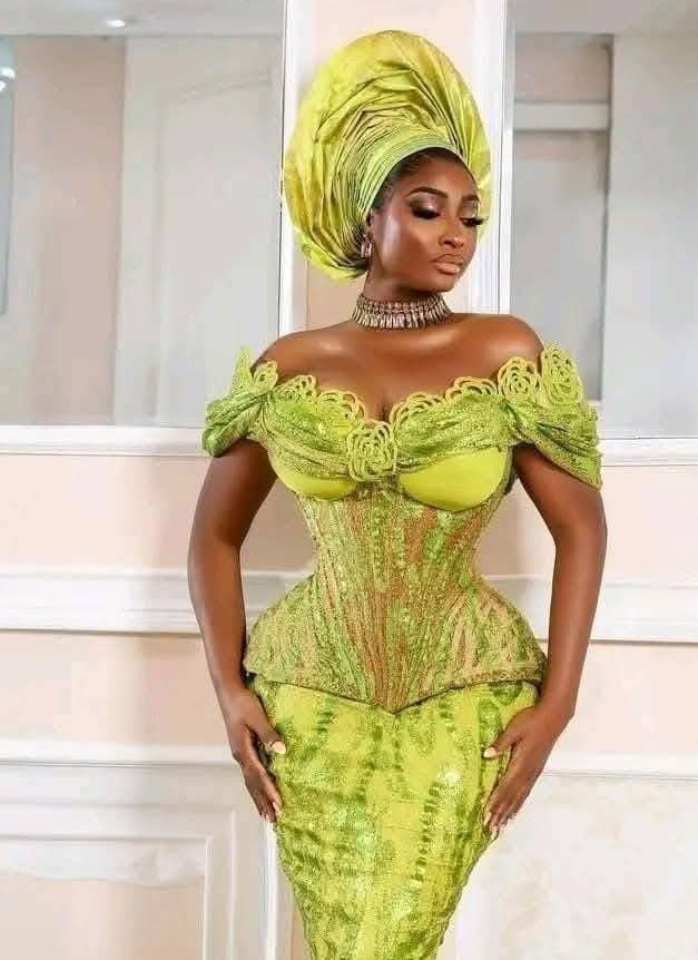 lemon green aso-ebi styles 2025, trending Nigerian lace styles, lemon green owambe fashion, aso-ebi ideas for weddings, corset lace styles Nigeria