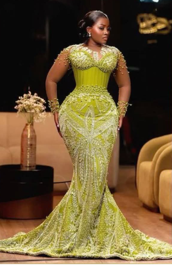 4. Fully Beaded Lace Styles for Premium Glam. If you want to look expensive without saying a word, go for beaded lace. The shimmer and glow catch the light beautifully, especially under event lighting. Perfect for evening receptions and classy weddings, these gowns bring a rich and luxurious finish.